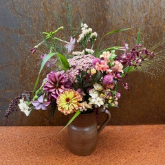 Van ongeveer mei tot oktober levert dit een veelzijdige plukoogst op, waar ze wekelijks wisselende gemengde boeketten mee samenstelt. Voor haar boeketten gebruikt ze naast bloemen ook grassen en andere ‘groene metgezellen’ die zich mooi houden op de vaas en die je vaak bij de reguliere bloemist niet zult vinden.